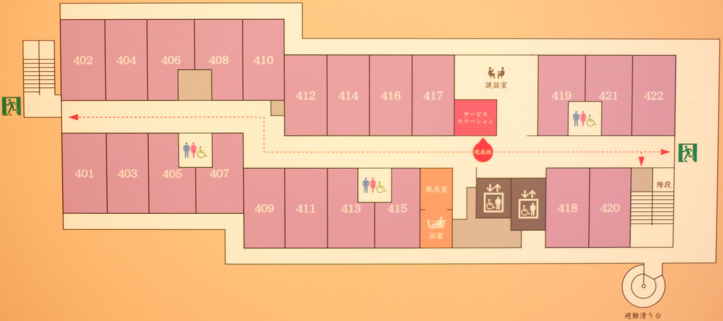 各階へはエレベーターでの移動となっています。